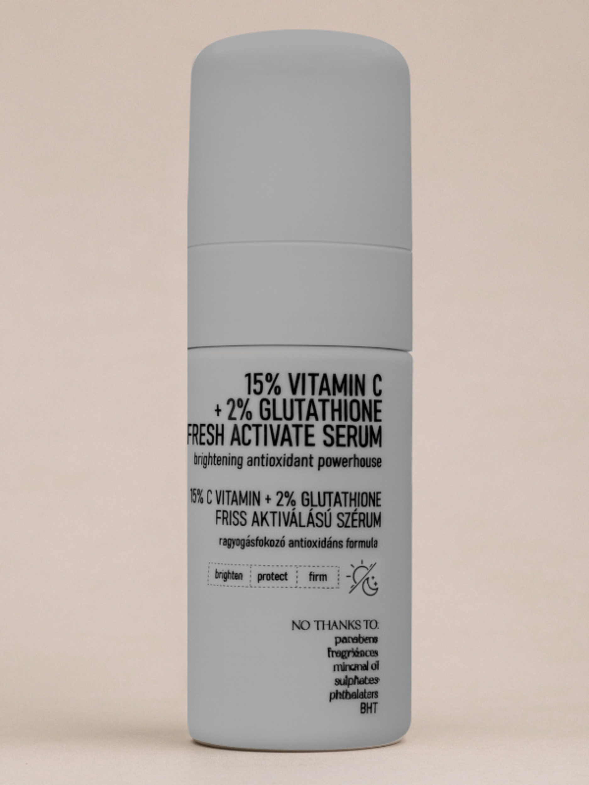 The active powder mixture is sealed in a separate internal chamber and remains inactive until first use. With a simple press of the pump, the formula is freshly activated, eliminating premature oxidation and ensuring uncompromised performance from the first drop to the last.